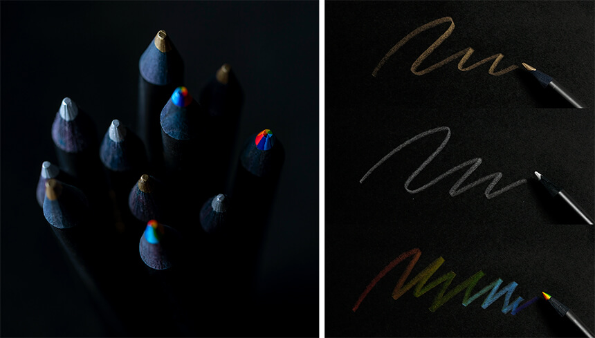 Entirely cloaked in black, from the pencil itself to its packaging, this pencil transcends the idea of a “colored pencil”. It offers a quiet, elegant redefinition of writing itself.