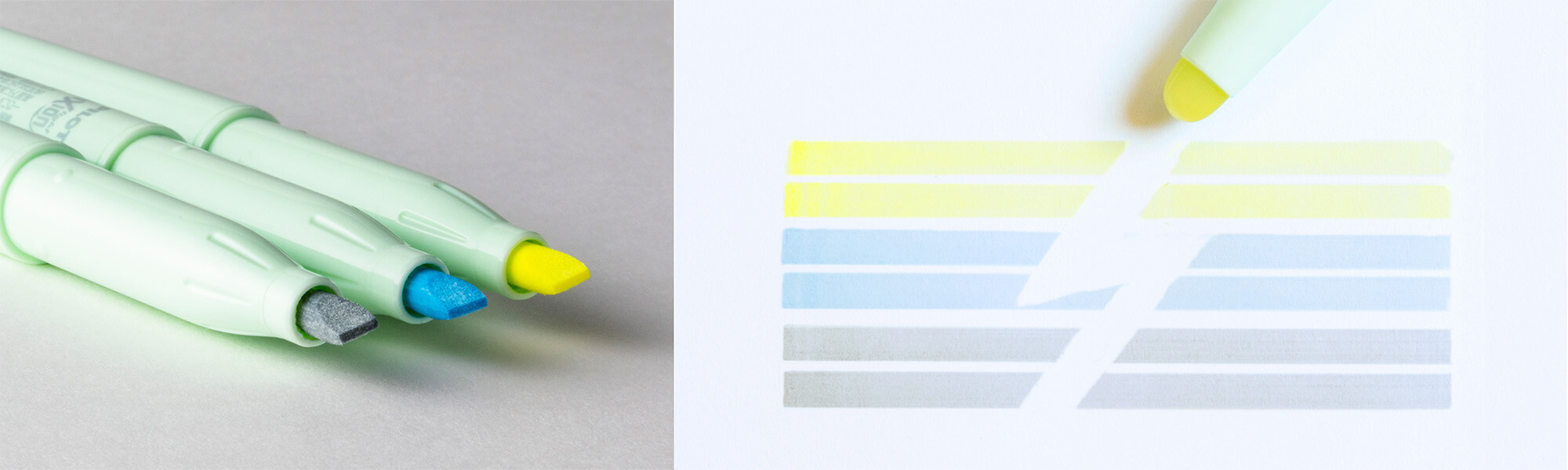 Available in three understated tones — soft yellow, sky blue, and gray — This highlighter moves away from the conventional intensity of typical neon highlighters. Instead, it highlights key information with a soft presence, maintaining legibility while gently drawing attention to what matters. Perfect for meeting notes, study materials, and planners, it adds a calm and elegant touch to every page.