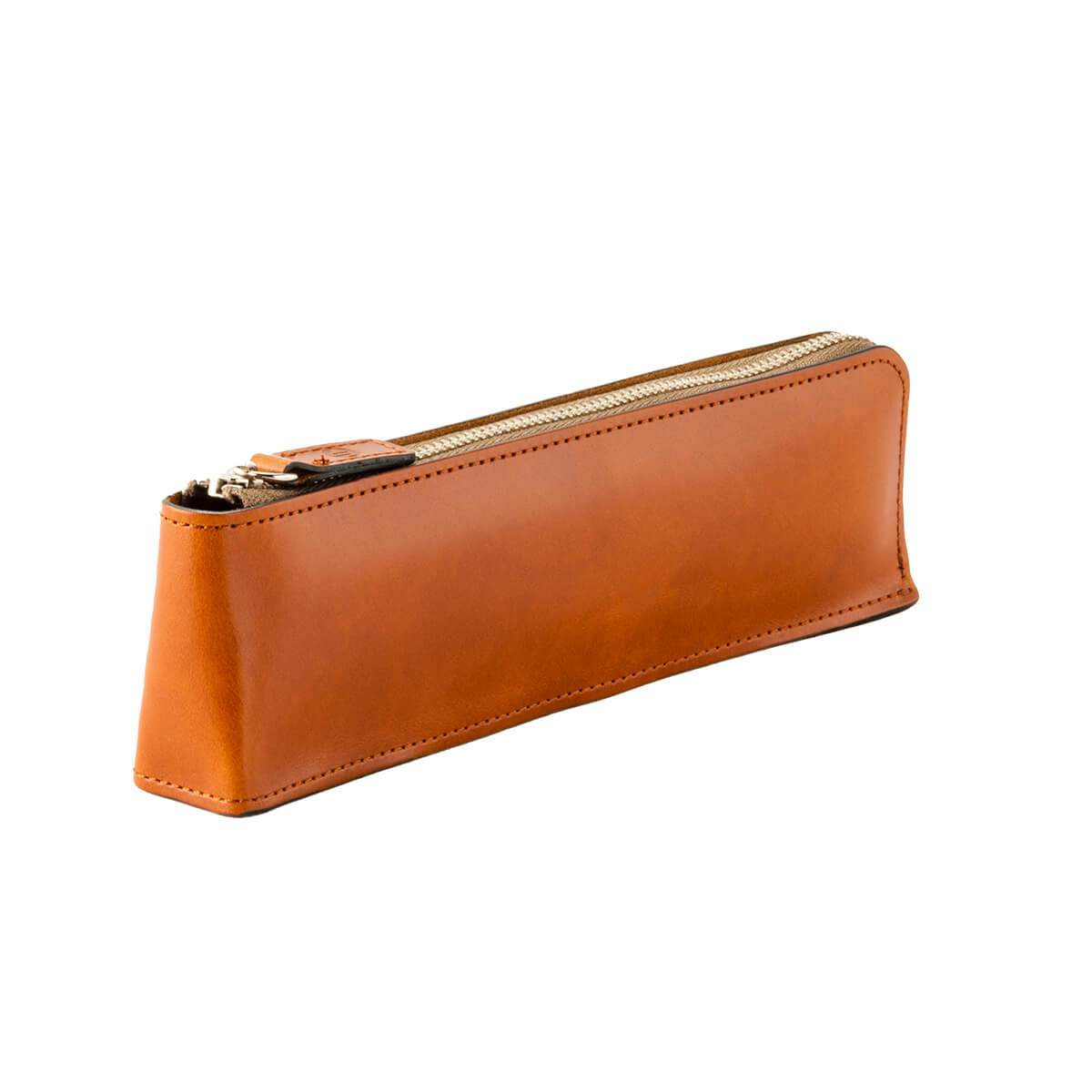 A fastener pen case created as a successor product for triangle pen cases that, unfortunately, have been discontinued. The robust storage capacity has been maintained, with the form updated to be able to stand up independently, thanks to the main component and bottom gusset being sewed separately, preventing it from getting in the way of things on your desk. The size is longer than ordinary pen cases, allowing it to hold pencils as well.